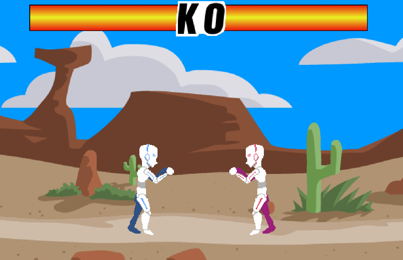Au début j'avais utilisé les sprites de Street Fighter 2 mais je n'avais pas trouvé cela très original du coup j'étais sur des formes simple (un carré et un cercle comme enemies) mais cela semblé compliqué de faire un jeux de combat avec ces formes geometriques du coup j'étais passé à des opposants robots. Pourquoi des opposants robots? Parce que l'on ne s'identifie pas à eux, ce sont comme des adversaires neutres et du coup on ne s'encombre pas d'un background-personnage. J'avais pensé à ce concept après avoir regardé le trailer de"Battle Angel : Alita", et comme je suis un peu fan de tout ce qui ressort Sci-fi, j'ai pensé que ça serait pas mal de faire combattre des robots du coups. Simple et efficace ^^